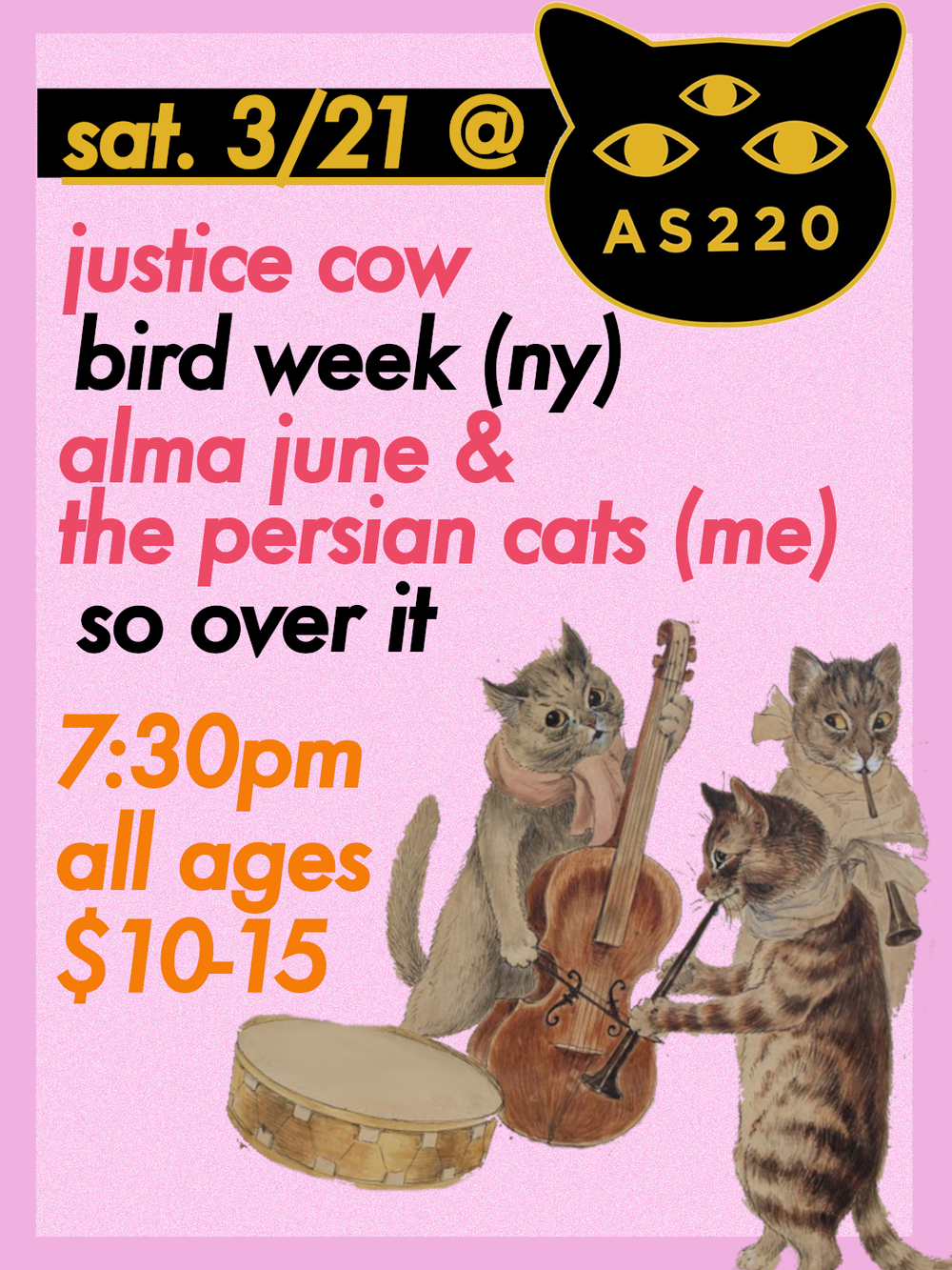 Justice Cow + Bird Week + Alma June & the Persian Cats + So Over It